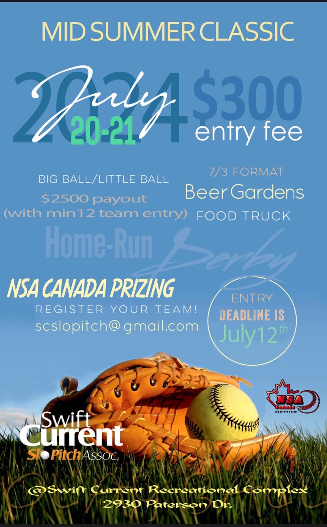 We’re excited to announce that the 2025 Swift Current Slo-Pitch season is officially in full swing! Be sure to follow us on Facebook at Swift Current Slo Pitch Assoc. for the latest updates, announcements, and league news throughout the season.